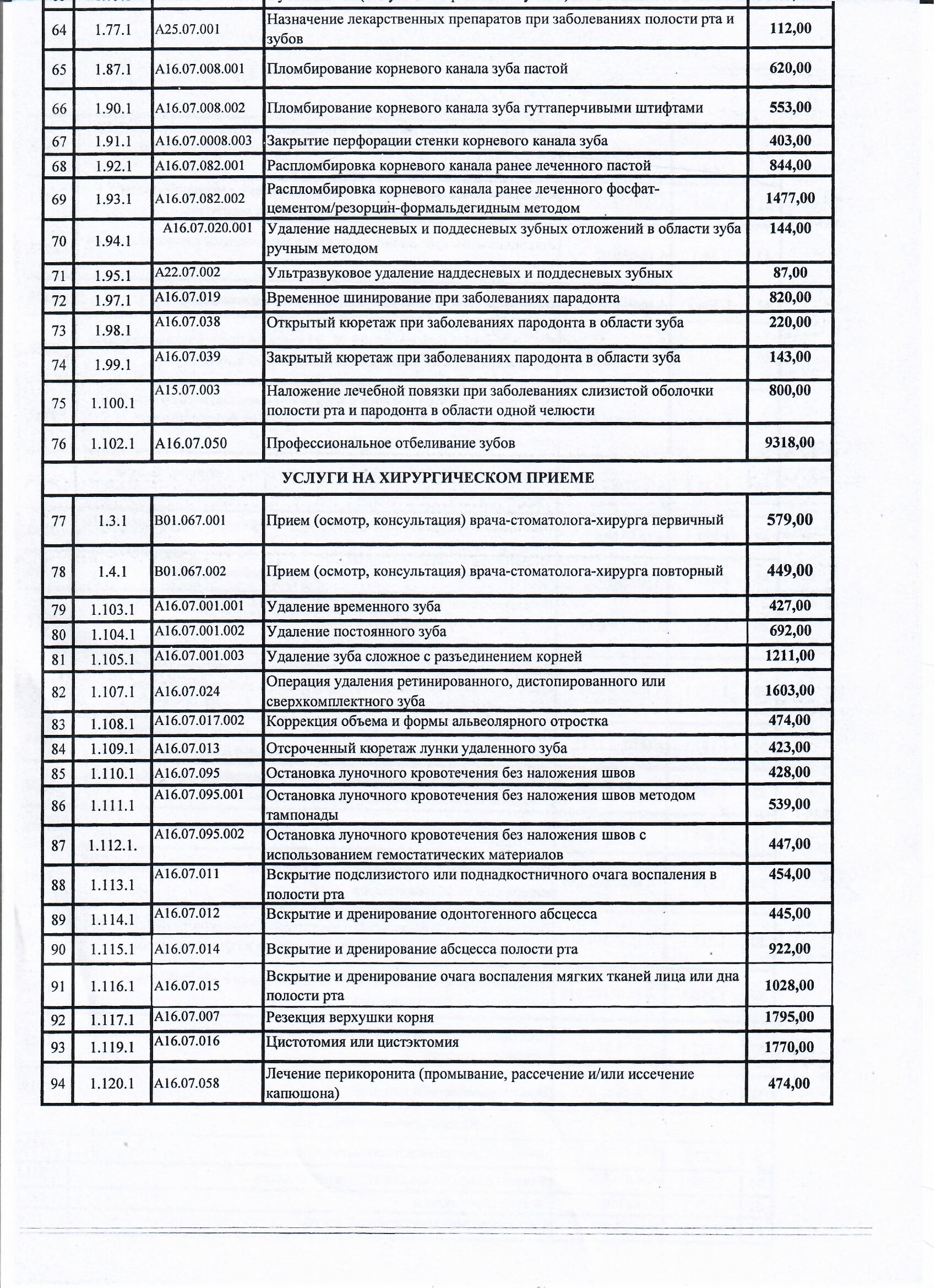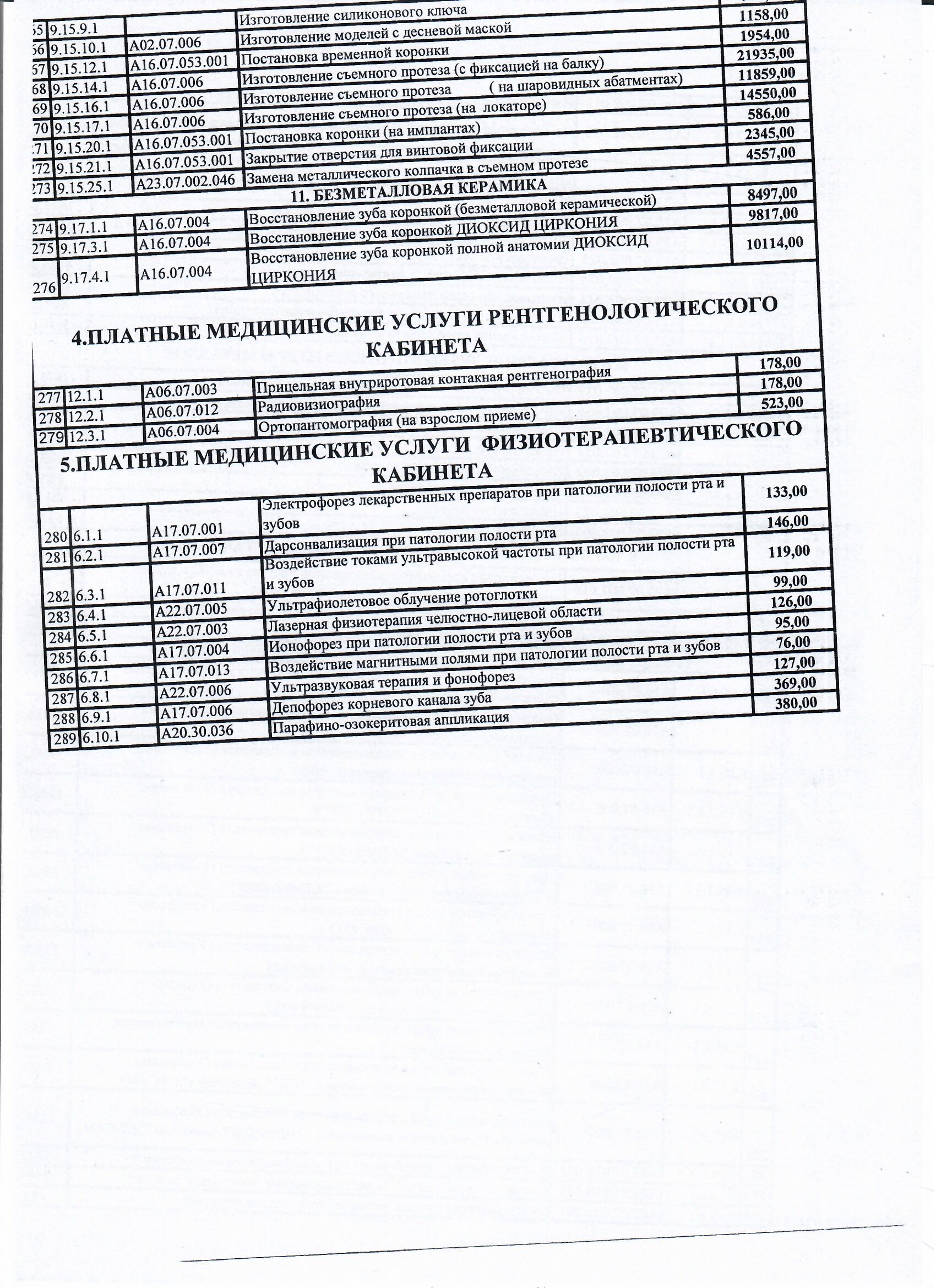 Главная Информация для пациентов Прейскурант цен на платные услуги